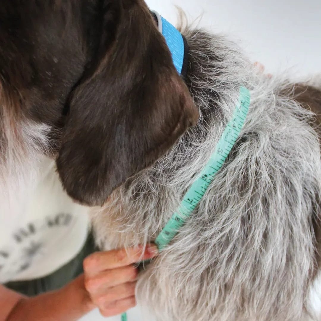 We highly recommend using a flexible measuring tape as shown on the picture. While measuring your dog, make sure he stands up with a straight back. If your dog have a thick fur put pressure on the measuring tape to avoid overestimated measurements.
